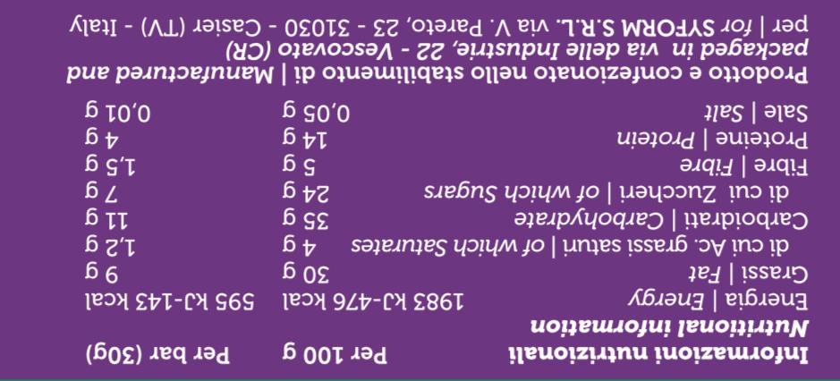 Sybar Energy is an energy bar based on dried fruit (almonds, cashew nuts, sesame seeds), fruit paste and rice starch. It is an ideal source of rapid and long-lasting energy thanks to its high content of carbohydrates and lipids. As it contains dried fruit rich in lipids, its digestion and absorption is slower than in the case of Sybar Energy Fruit, and is therefore more suitable for a constant and long-term supply of energy. Sybar Energy is an ideal snack for endurance sports and long hikes of medium intensity on foot or by bike. During long physical activities, it is recommended to consume foods rich in fats, whose caloric intake is twice as high as in the case of glucides. It does not contain gluten, lactose or palm oil.
