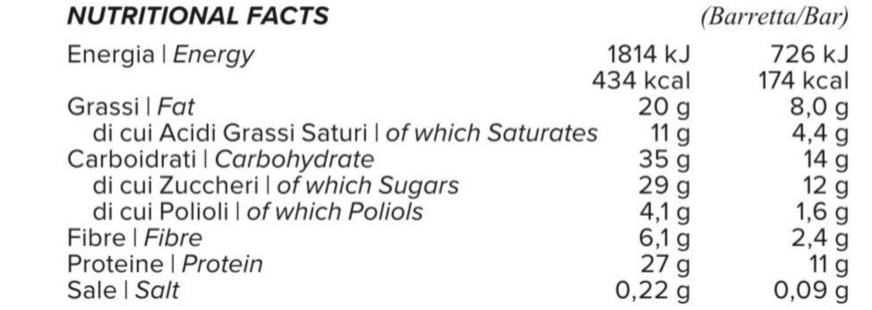 Cookies&Cream: Hazelnuts, wheat and butter. The product may contain traces of eggs, peanuts and other nuts (almonds, walnuts, cashew nuts, pistachios, pine nuts).
